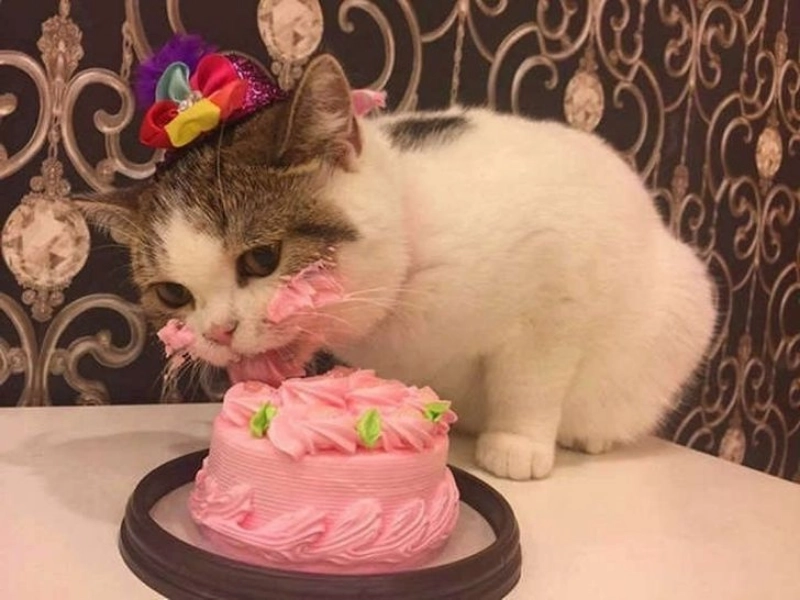 It was a special day for Mittens the cat—her birthday! Her owner Susan baked a cake with all of Mittens' favorite things: tuna, chicken, and silver vine. Mittens eagerly consumed her cake, then curled up for a nap filled with dreams of toys, tail-chasing, and sunny spots. She woke up refreshed and happy, prepared to enjoy her special day.