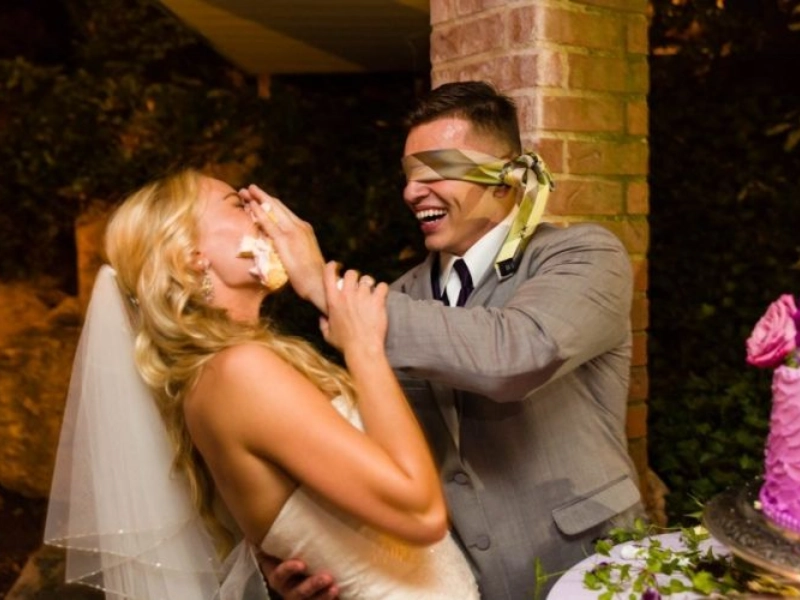 The groom put his whole heart into offering the bride a piece of cake. It got messy, but that just made it more fun. This is a memory they’ll laugh about forever.