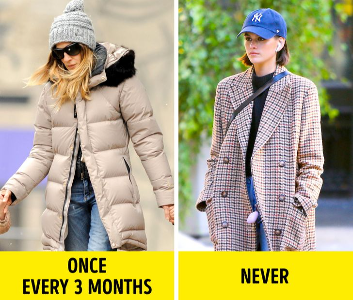 Jackets should be washed in cold water, no more than once every three months, since they seldom contact bare skin. Adding tennis balls to the washing machine can help prevent down and feathers from clumping, maintaining the jacket's form.