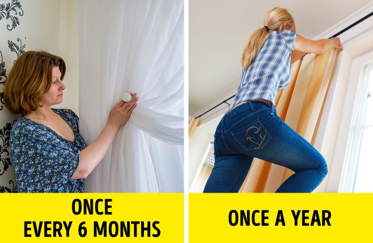 Tulle curtains collect dust more rapidly and should be washed every six months. In kitchens or other spaces where grime accumulates faster, wash them more frequently to ensure cleanliness.