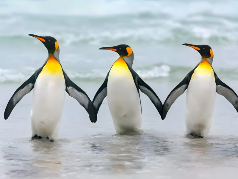 This sweet photo shows three King Penguins strolling along the beach, holding each other’s wings. It was selected for the 2023 Comedy Wildlife collection, highlighting the touching parallels between animal and human relationships.