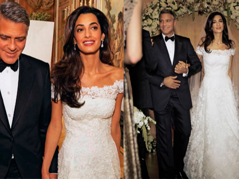 Amal Alamuddin, now Amal Clooney, wore an Oscar de la Renta gown valued at nearly $400,000. The dress's stunning lace and elegant silhouette embodied sophistication, setting a new standard for bridal fashion.