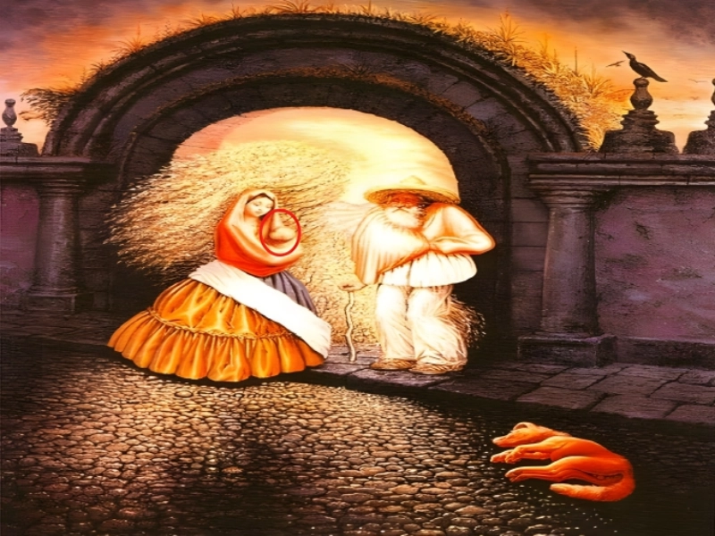 The final and most difficult face to spot is in the woman's arms—the baby's face!
