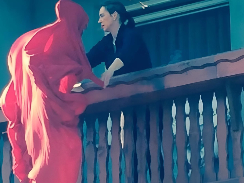 Without context, some might think the woman is communicating with a spirit or involved in something mystical. The ghostly form and her calm expression blur the line between reality and the supernatural, inviting viewers to imagine their own stories.