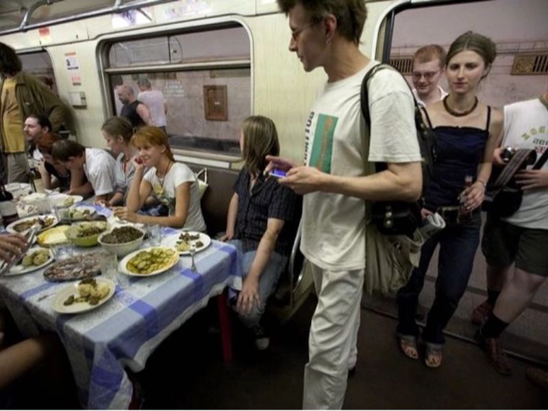 Why not feast on the go? This cheerful group turned their corner of the train into a banquet hall, sharing food, laughter, and infectious joy with fellow passengers.